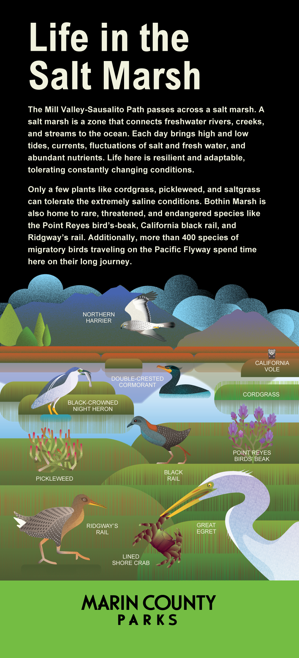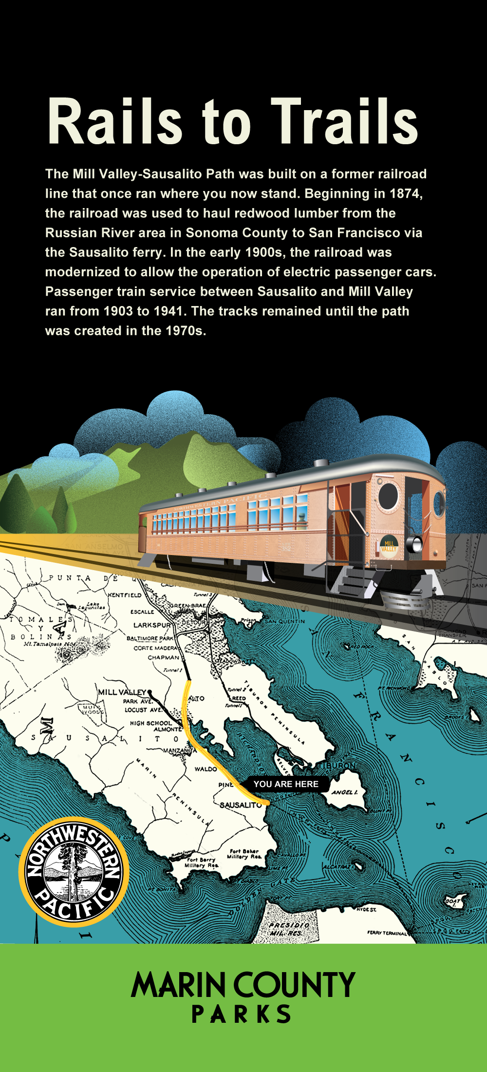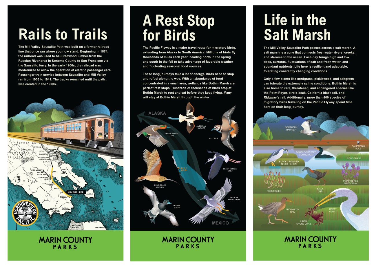 Interpretive Illustrations created for signage along the Mill Valley-Sausalito Pathway.